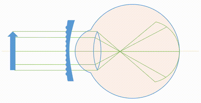 我们要做的就是让眼镜准确得改变进入眼睛的光路,让周围模糊景物的成像离开视网膜,落到视网膜的前方。